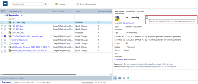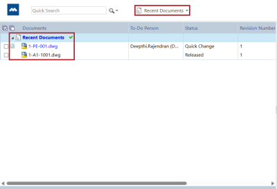 You can now access up to 30 documents in the Recent Documents navigation view, making it easier to return to your work. To add an item, click the clock icon next to the filename in the Document tab. To open the list, select Recent Documents in the navigation toolbar.